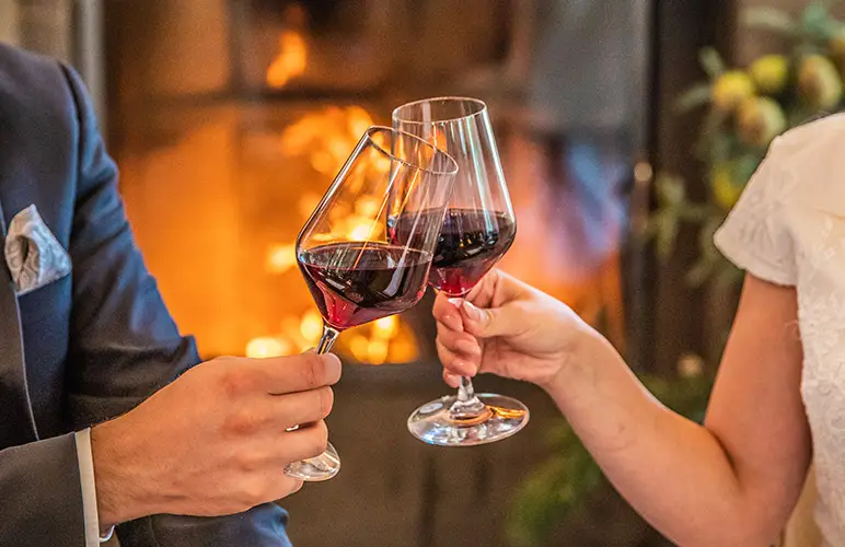 Lassen Sie den Tag/Abend in unseren gemütlichen Räumen am prasselnden Kaminfeuer und mit einem Gänseessen oder weiteren kulinarischen Köstlichkeiten ausklingen.