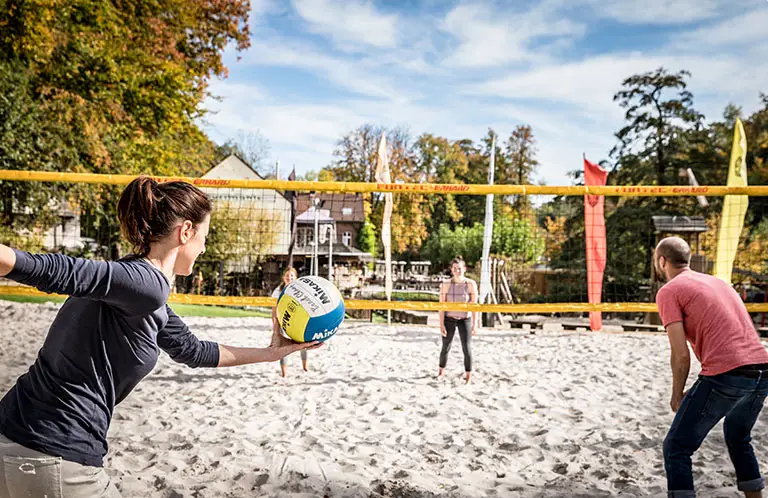 In direkter Nähe zum liebevoll! finden Sie unseren Spielplatz mit angrenzendem überdachten Beach-Feld, eine Torwand, eine Boulefläche, unsere kleine Imkerstation und unser professionelles, künstliches Putting-Green. Stadtnah und doch raus. Einfach raus!